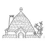 L’antico Trullo affiancato da costruzioni più recenti (Lamie) si presenta come un piccolo villaggio sul versante della collina di Montesasso.